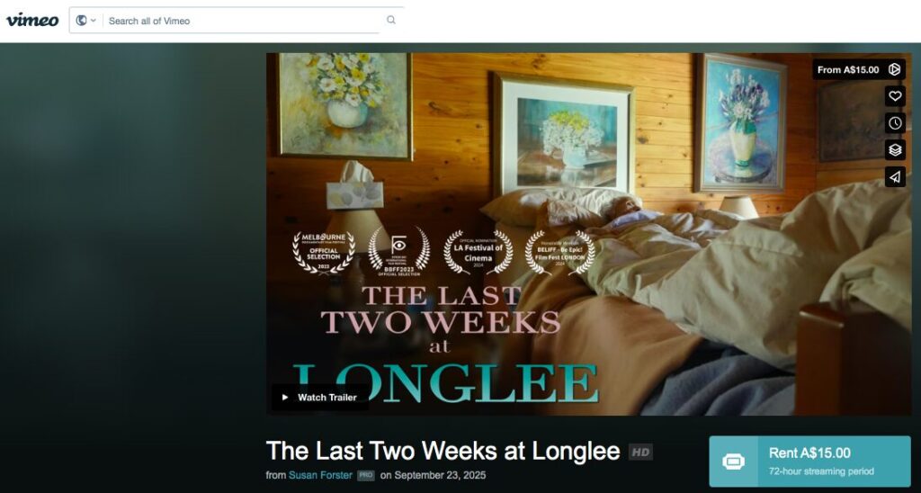 When Victorian artist Lee Stephenson discovers she is dying and requests, in no uncertain terms, to die at home, her daughter, a filmmaker, captures this remarkable footage of the last two weeks of her life. Shot at ‘Longlee’, her mother’s log cabin home in the stunning Goulburn Valley, we witness the 82-year-old outspoken artist navigate her impending death, veering between grace, anger, clarity and confusion. The family disclose their real feelings about seeing Lee dying, and reflect on the state-funded palliative care she receives at home, complete with a ‘must-have’ hospital bed. We see the generosity of spirit of the palliative care support team as they support Lee and her husband, Roger, who in turn draws on his farming background to care for his dying wife. With love, humour and sadness, and in the thick of COVID restrictions, they work together to grant Lee her final wish – to die at home.
